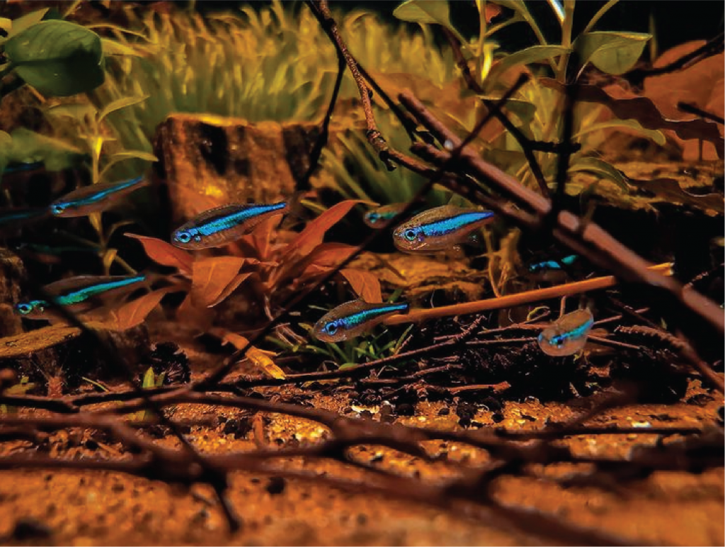 Selain harganya yang terjangkau, ikan Neon Tetra juga cukup gampang dalam hal pemeliharaan. Ketika sebuah aquascape yang begitu hijau, lalu ditambah gerombolan ikan Neon Tetra kecil-kecil namun berkilau tentu sangat enak dipandang.