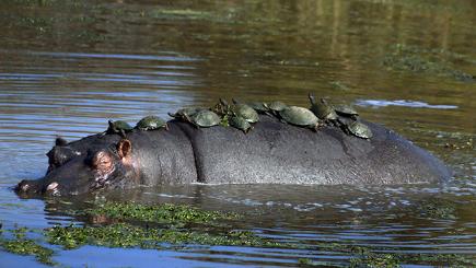 Sebenarnya tidak ada hubungan simbiosis mutualisme antara hewan besar tersebut dengan si kura-kura, tetapi ada dugaan bahwa hewan besar tersebut telah belajar memanfaatkannya dari pengalamannya di masa lalu.